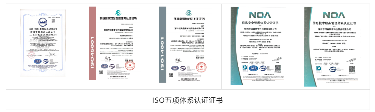 近期,Gooxi成功顺利获得ISO27001信息安全管理体系、ISO20000 IT服务管理体系两项国际认证。这是Gooxi继顺利获得ISO9001质量管理体系、ISO14001环境管理体系、ISO45001职业健康安全管理体系ISO体系三认证之后再度取得的高含金量的证书。顺利获得ISO五项体系认证表明Gooxi在质量、环境、职业健康安全、信息技术服务及信息安全领域均实现了高质量建设开展。