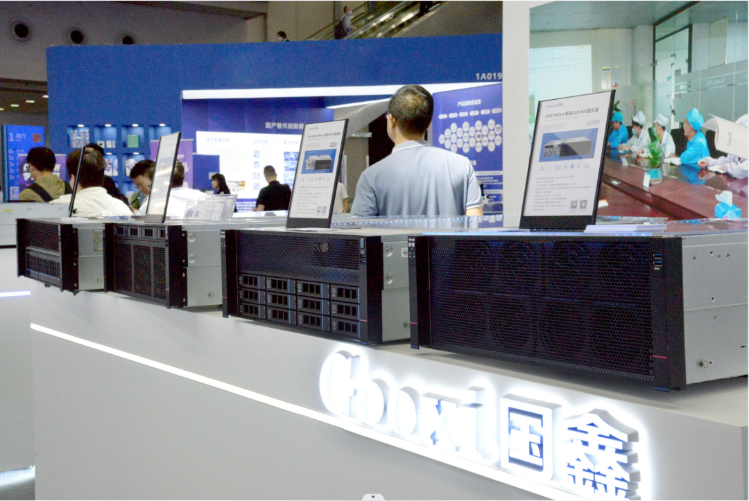 此次展会,Gooxi还展示了系列通用计算产品,以强大的计算性能和丰富的扩展能力为特点的,持续为政府、教育、金融、制造等行业客户赋能给予丰富算力支持。有率先搭载第五代英特尔®至强®可扩展处理器的Gooxi Eagle Stream双路高端服务器;搭载了AMD第四代EPYC™处理器的Gooxi AMD Genoa 双路高端服务器;以及龙芯双路标准服务器、海光3号双路高端服务器等国产系列服务器。